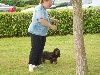 Noir/Feu- Chienne d'un bon type- Juste un petit peu basse sur pattes- Jolie tête féminine- Crâne encore un peu rond- Nez qui ne doit pas être plus court- Bonnes épaules- Poitrine encore juvénile- Bonnes angulations arrières- Marche un peu serré l'arrière- Un peu ouvert a l'avant.